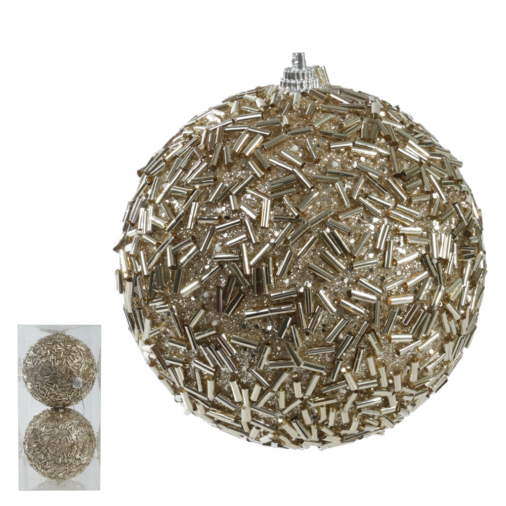 O conjunto de 2 bolas de Natal douradas traz brilho clássico e sofisticação à sua decoração. Produzidas em plástico resistente, são leves e práticas, perfeitas para árvores, guirlandas e arranjos natalinos.
