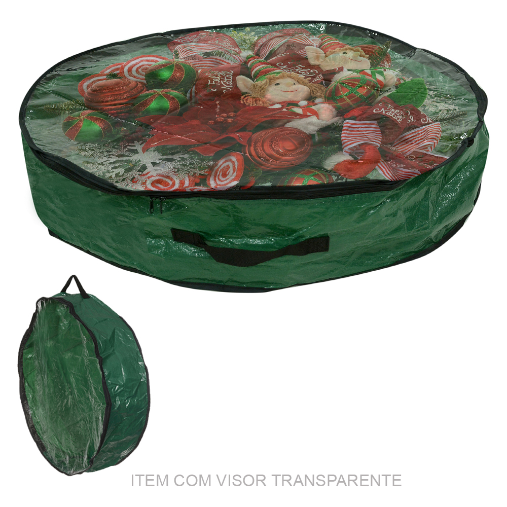 A bolsa para guirlanda é prática e funcional, ideal para armazenar e proteger sua guirlanda de Natal com segurança. Produzida em material resistente, possui alça que facilita o transporte e ajuda a conservar a decoração por muito mais tempo. Com 21cm, é perfeita para organizar e garantir que sua guirlanda esteja sempre em ótimo estado para os próximos Natais.
