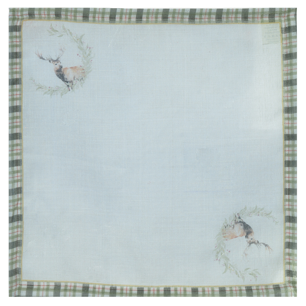 O Guardanapo de Tecido da Coleção Rústico é a escolha perfeita para quem busca uma decoração natalina com um toque artesanal e aconchegante. Feito em tecido bege, ele possui imagens delicadas de renas bordadas em estilo aquarela em duas pontas e bordas xadrez verde, trazendo uma combinação charmosa e acolhedora para sua mesa. Este guardanapo é ideal para compor uma mesa temática com elegância e o charme rústico da Poliana Caxias e Casa do Natal.