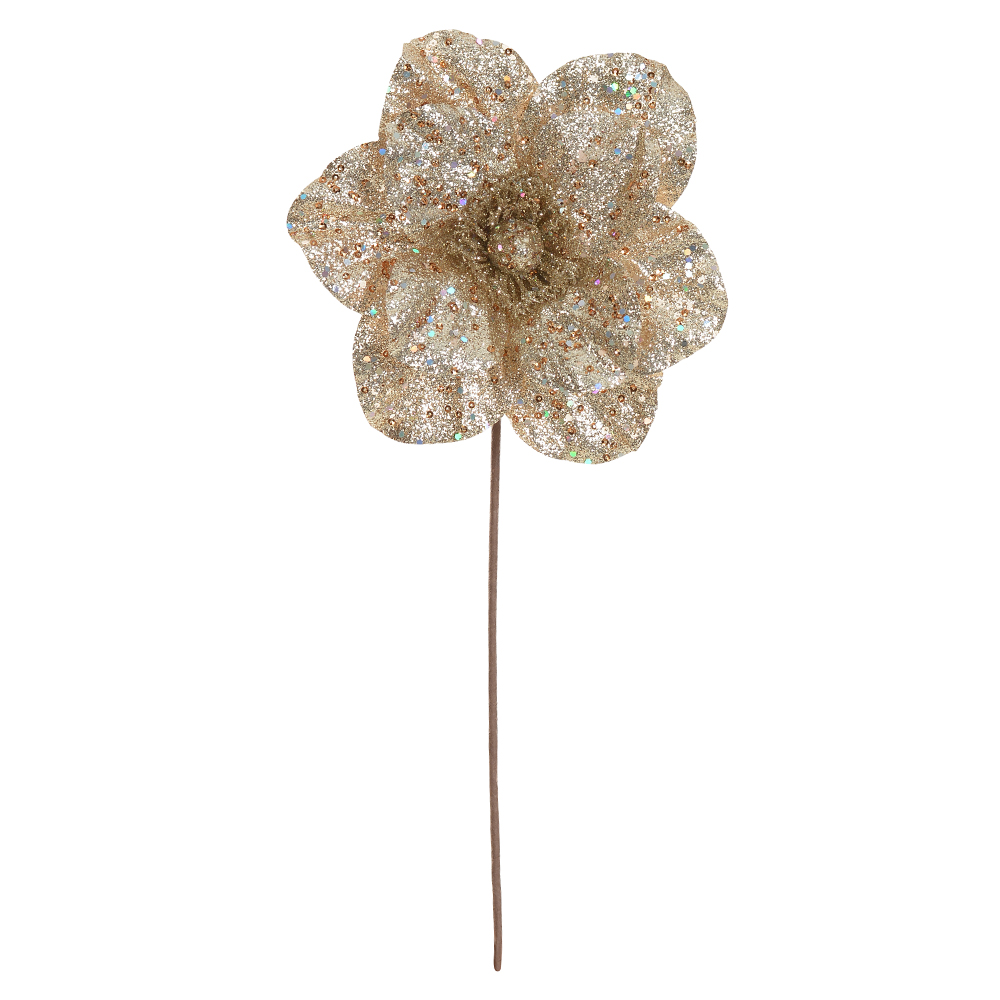 A haste Magnolia Natal é uma peça delicada que traz um toque sofisticado às decorações festivas. Com pétalas em tom champanhe e acabamento elegante, ela pode ser utilizada em arranjos, guirlandas ou diretamente na árvore de Natal, criando um efeito luminoso e refinado. A tonalidade neutra facilita a combinação com outras cores, permitindo composições clássicas ou modernas.